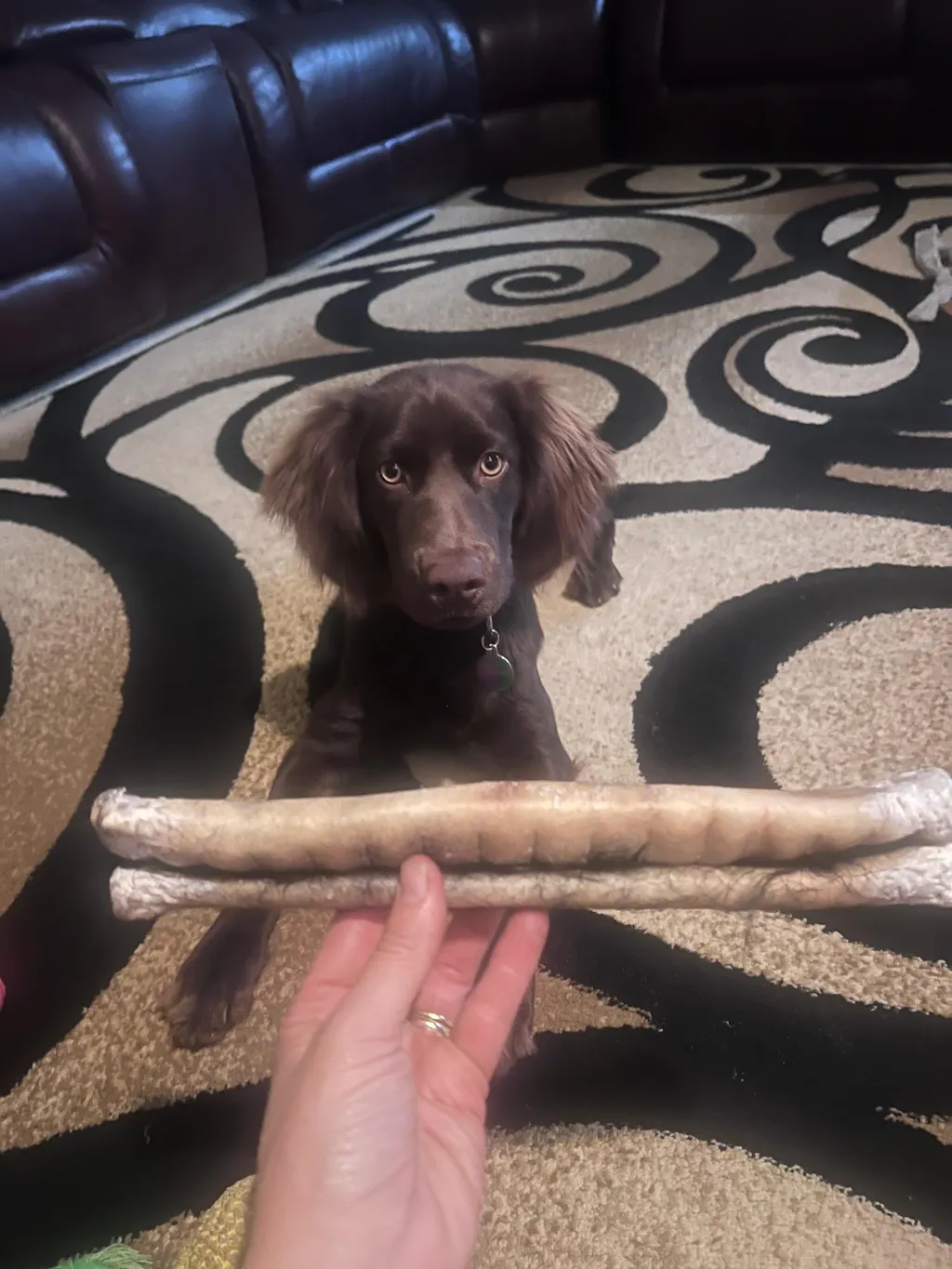 My dog told me to give this a 5 Paws rating. My dog loves to chew and this Hair-on Hide Rolls gives her lots of time to chew. She has been chewing for 30 minutes and she’s one half through. Great product to keep my girl busy.