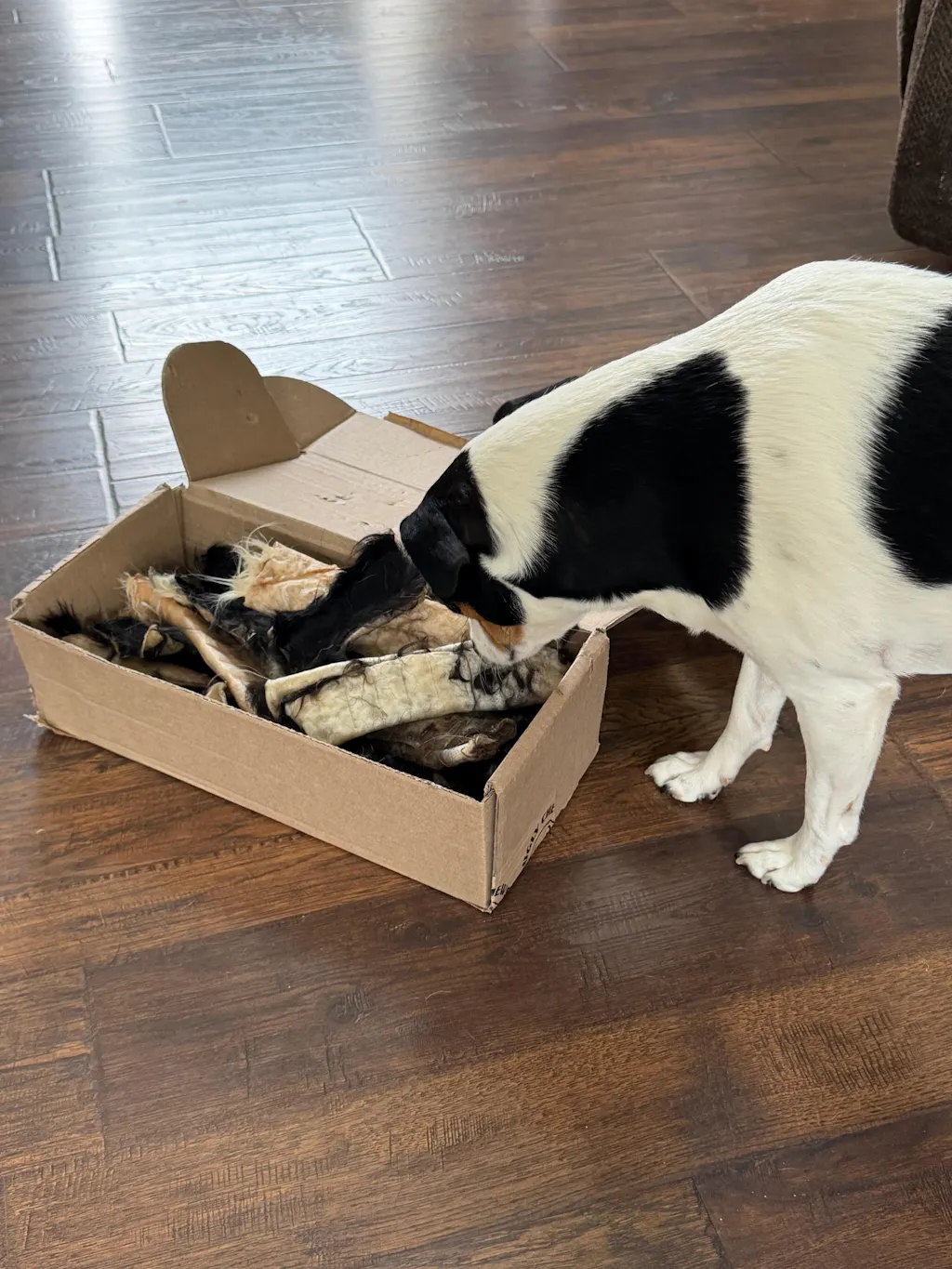 My pup has loved the hair-on hide rolls and the scrap chips since she was a true puppy. She loves them so much that when she gets a new one she immediately hides it! She knows her hide rolls are special and worth savoring. Often, we'll see her walk by us back and forth from room to room for days at a time, changing safe spots, even after enjoying a few chews. Thanks, y'all!