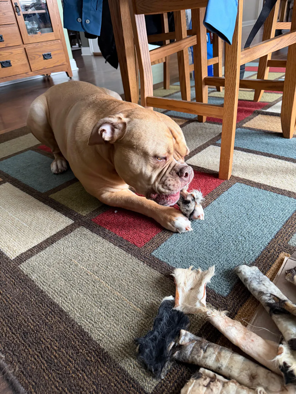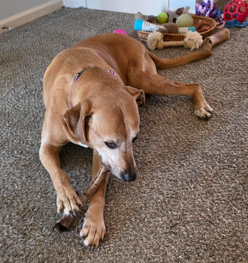 It kept her focused and busy for a solid 2 hours right up until bedtime. I finally had to put it up so she’d go to sleep, but I can tell she’s already looking forward to another 'ugly' chew session tomorrow evening!