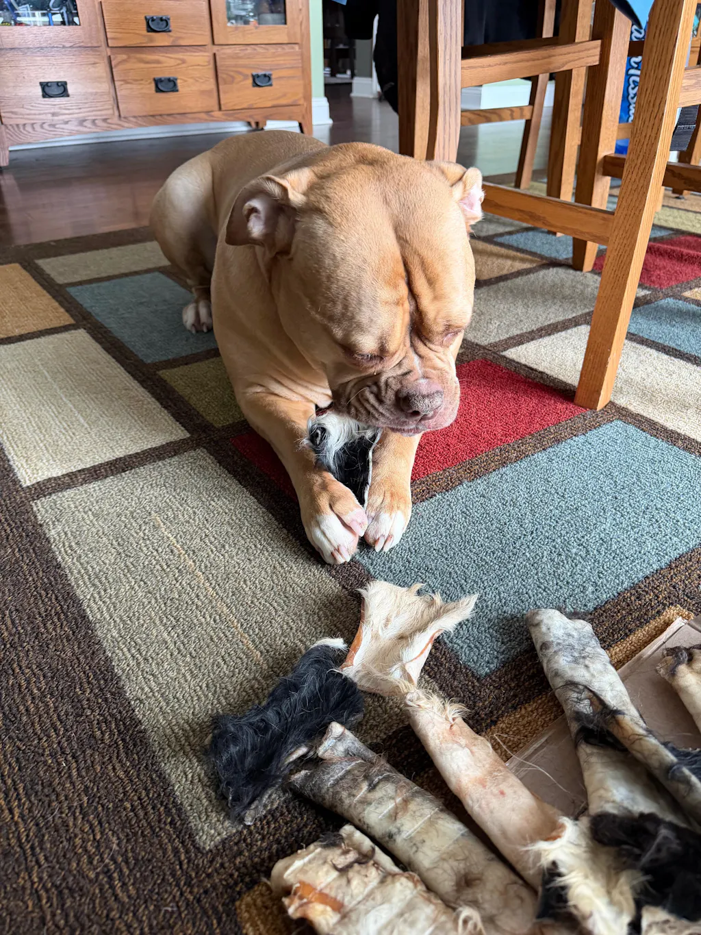 I was a little skeptical at first with the hair.. but my Belgian Malinois Sköll loved it! I let him chew in increments so that he’d get multiple sessions out of one! Great calming chew especially for my aggressive chewer! Thanks for making a sustainable chew for my pup! I’ll definitely be purchasing more in the future!