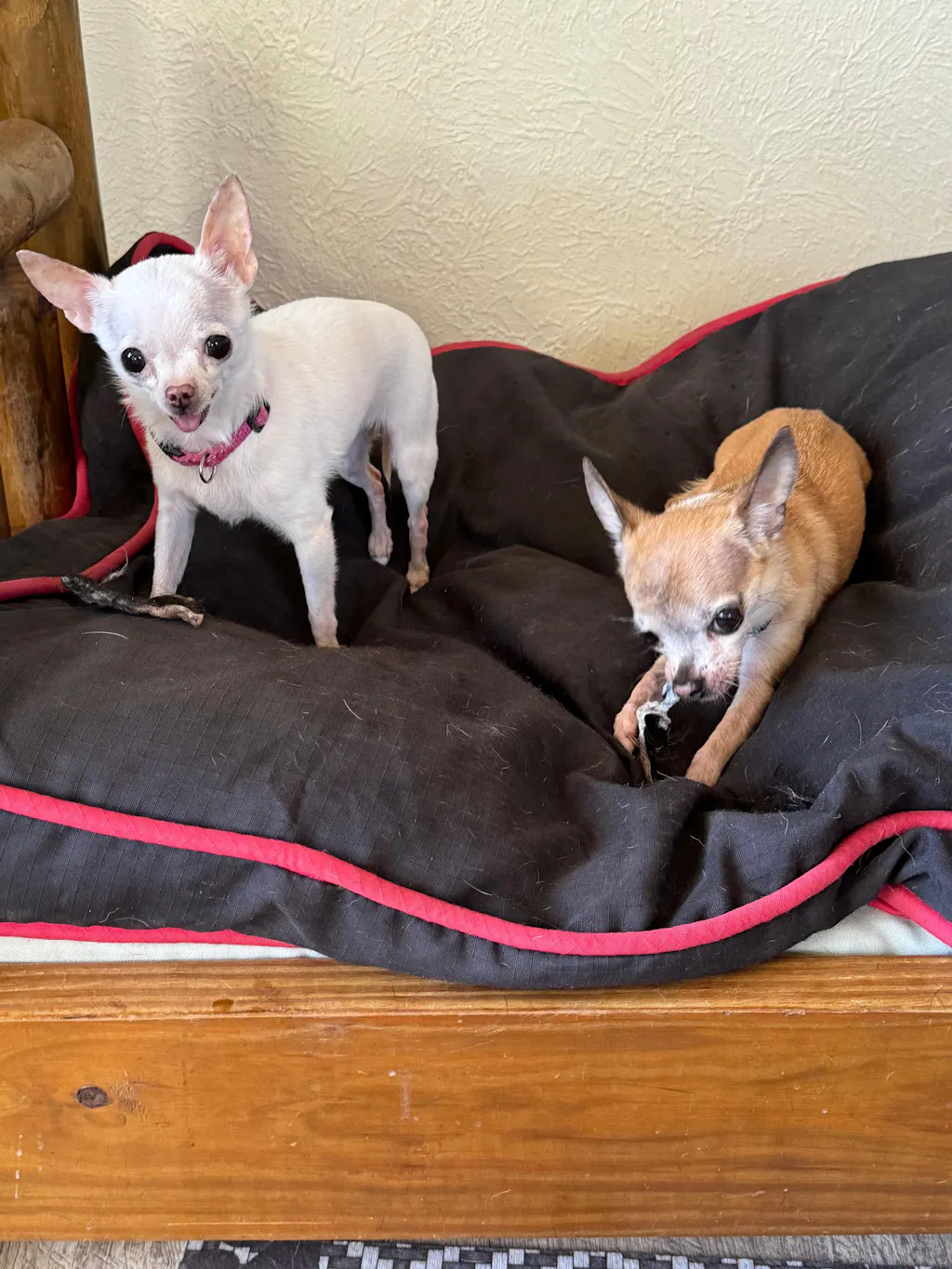 Both my dogs love ugly chews hair on hide rolls. It keeps them busy, engaged, and they’re super happy while chewing. My boys get so excited when the hide rolls come out, and they last for ages!